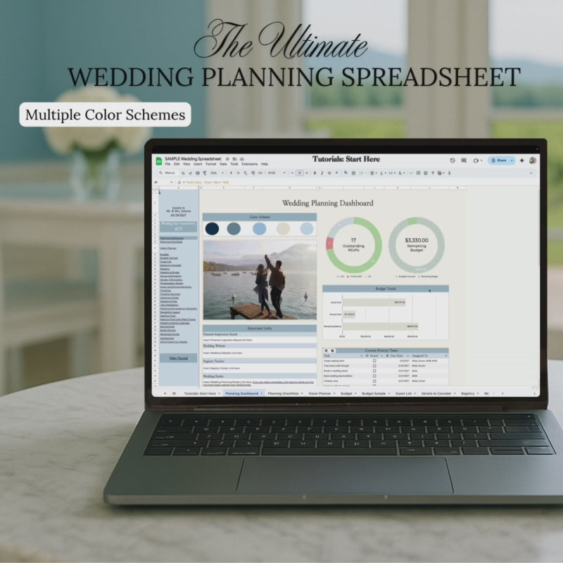 This customizable Google Sheets planner includes everything from budget tracking and seating charts to vendor timelines, planning checklists, guest RSVPs, and more. No more scattered notes or tabs- organize every detail in one place! With a tutorial video to help you every step of the way!