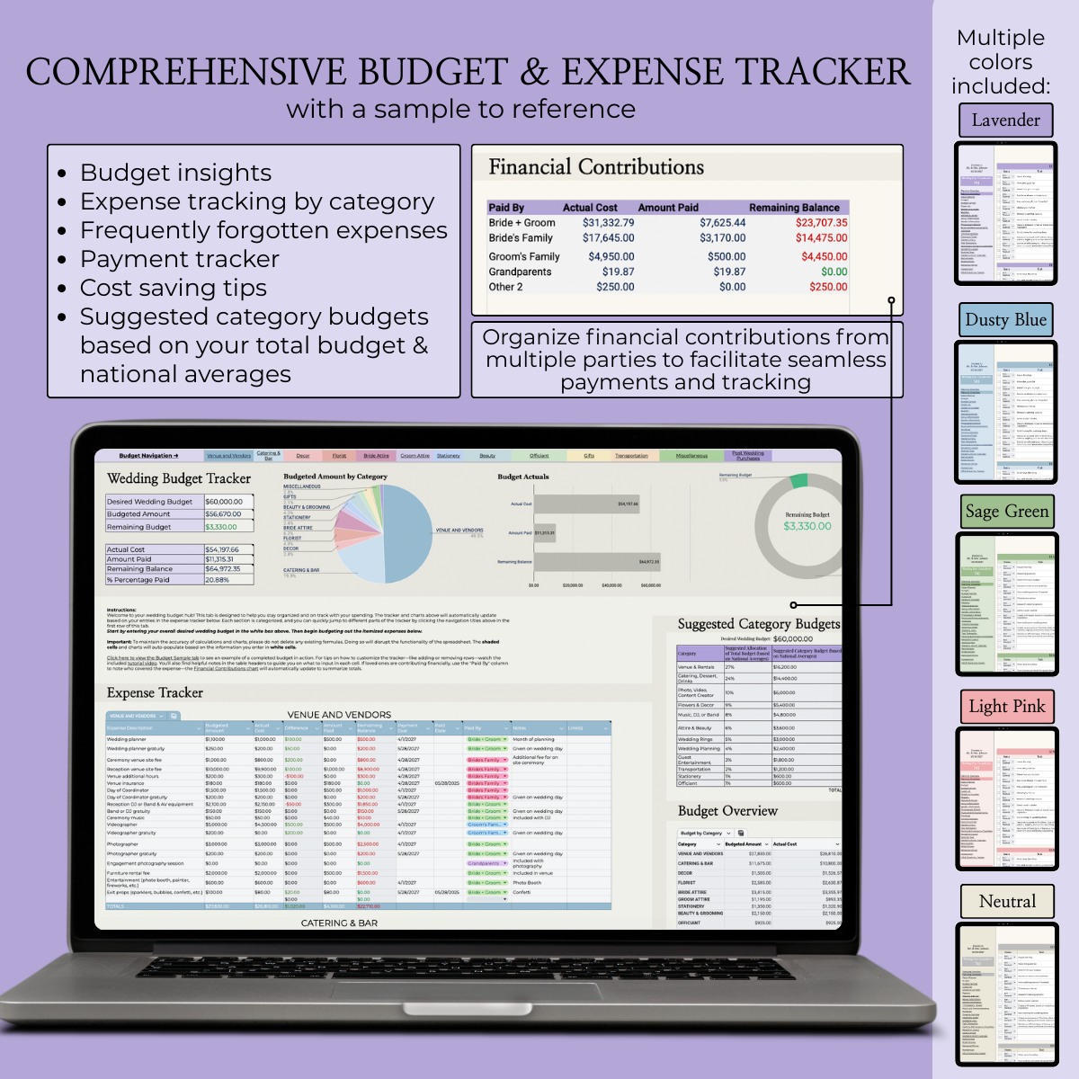 Yes, you can change your spreadsheet to dusty blue, light pink, lavender, sage green, or neutral with one button click! To do so, navigate to the “Tutorials: Start Here” Tab. You can also manually change to any custom color.